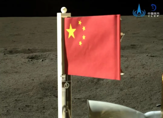 嫦娥六號在月球背面著陸后,伴隨著月面國旗展示系統(tǒng)的順利打開,鮮艷的五星紅旗在月球背面“飄揚(yáng)”。