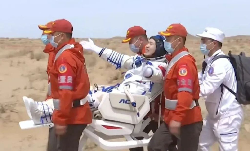 北京時間2025年4月30日13時08分,神舟十九號載人飛船返回艙在東風著陸場成功著陸,現(xiàn)場醫(yī)監(jiān)醫(yī)保人員確認航天員蔡旭哲、宋令東、王浩澤身體狀態(tài)良好,神舟十九號載人飛行任務(wù)取得圓滿成功。