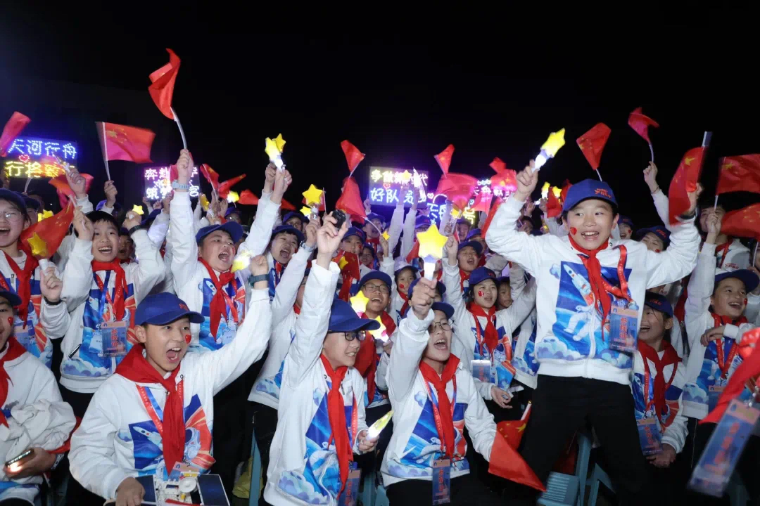 少先隊員們現場觀看火箭發射盛況