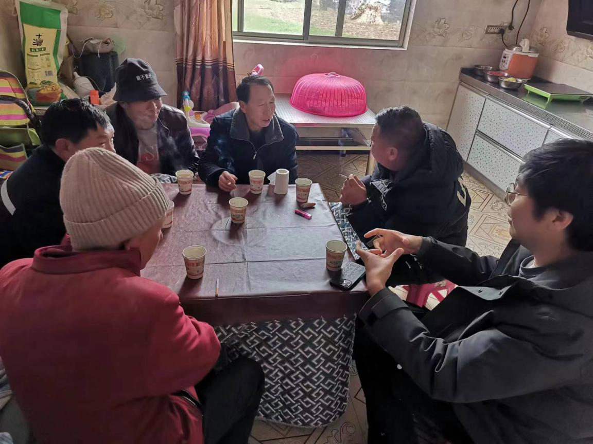 春節(jié)前,郝昕(右一)在村民家里走訪