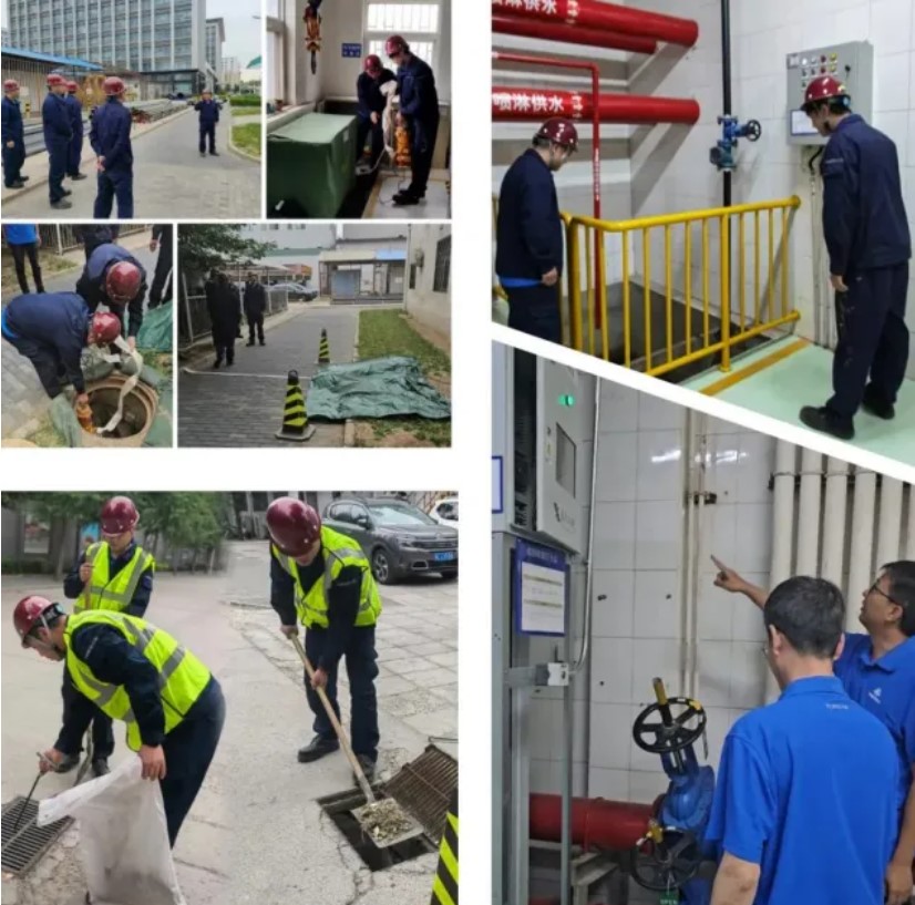對(duì)在京園區(qū)的動(dòng)力站、變電站、公共食堂、地下空間、施工工地等重點(diǎn)防汛部位和人員密集場(chǎng)所進(jìn)行隱患排查,增加沙袋沙箱和抽水泵配備數(shù)量,完善防雨水倒灌措施。