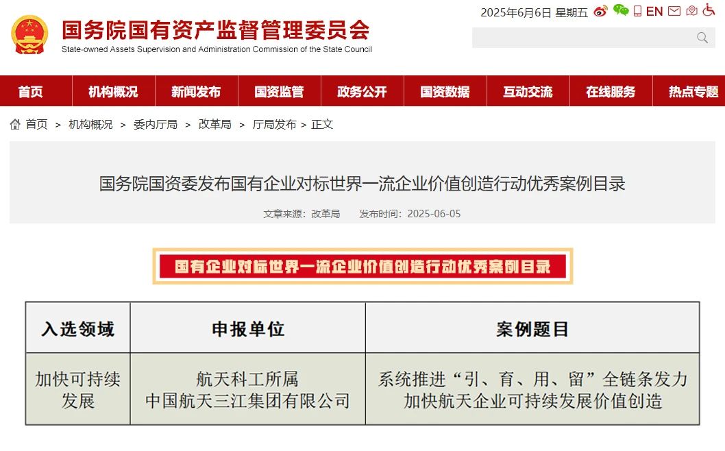 國資委發布價值創造行動優秀案例,航天科工九院入選!
