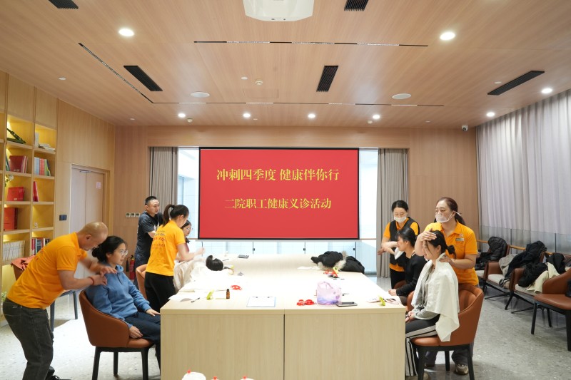 護身義診,放松緊張。11月18日-21日,二院工會面向一線骨干群體,組織了診療師隊伍分批次深入一線車間、研究室,開展義診服務,通過穴位按揉、點壓、舒緩推拿等手法疏通經絡,達到肌肉的層層放松。同時,向職工們講解健康養護知識,引導大家掌握便捷實用的護養方法。