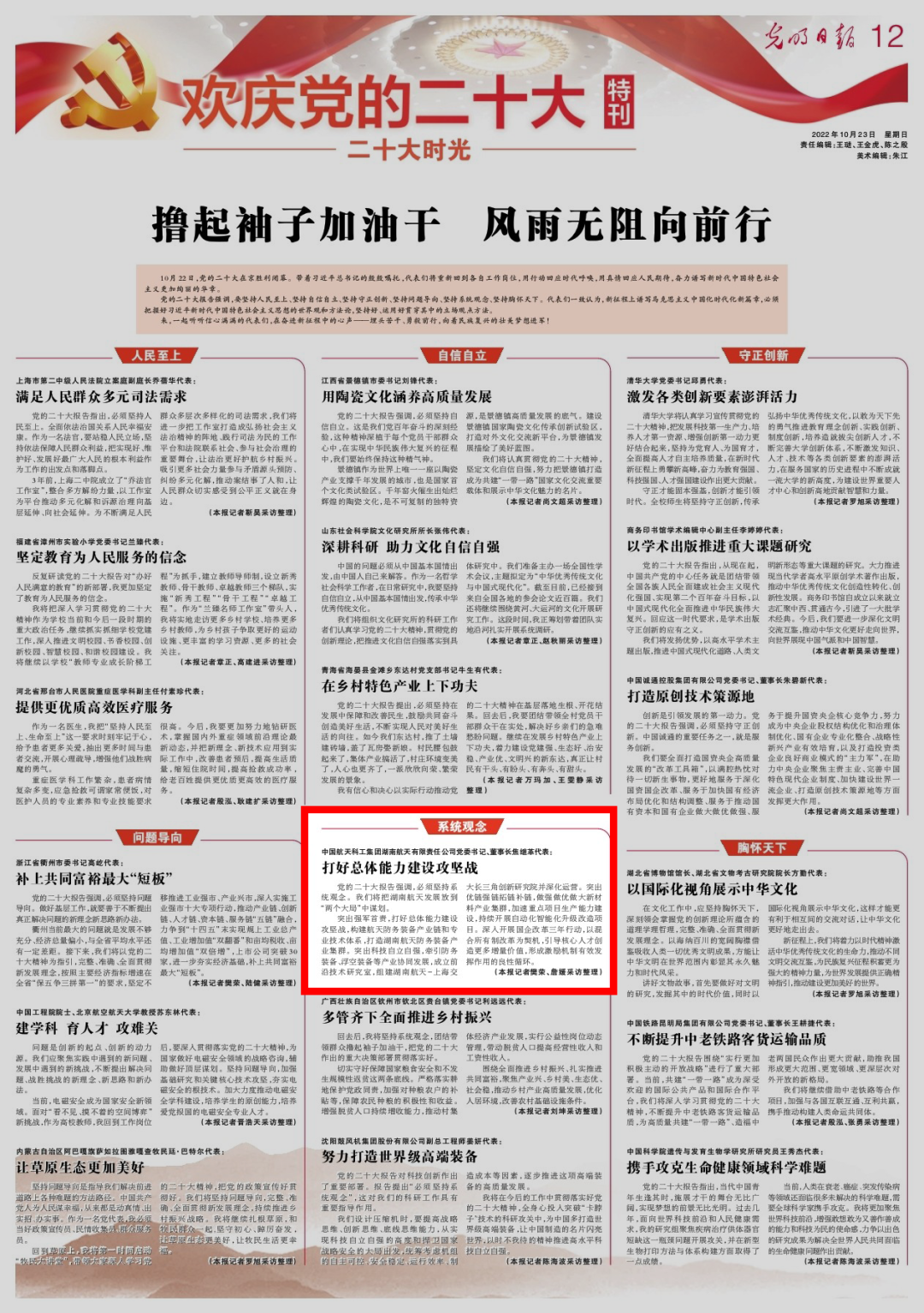 突 出強軍首責,打好總體能力建設攻堅戰,構建航天防務裝備產業鏈和專業技術體系,打造湖南航天防務裝備產業集群。突出科技自立自強,牽引防務裝備、浮空裝備 等產業協同發展,成立前沿技術研究室,組建湖南航天-上海交大長三角創新研究院并深化運營。突出優鏈強鏈拓鏈補鏈,做強做優做大新材料產業集群,加速重點 項目生產能力建設,持續開展自動化智能化升級改造項目。深入開展國企改革三年行動,以混合所有制改革為契機,引導核心人才創造更多增量價值,形成激勵機制 有效發揮作用的良性循環。