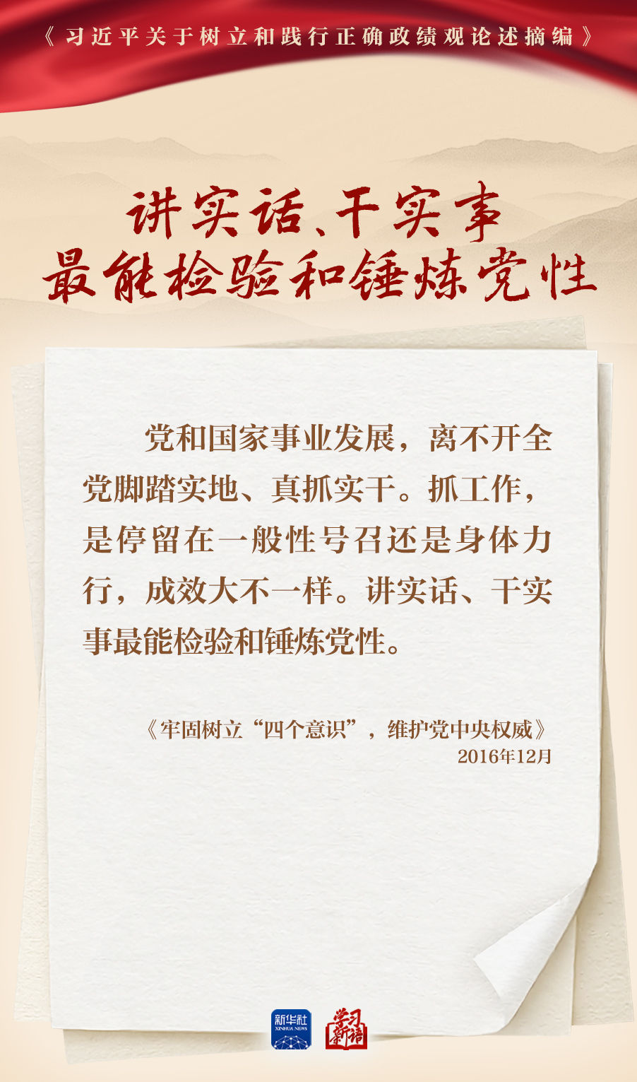 樹立和踐行正確政績觀學習教育正在全黨開展。真抓實干,是共產黨人的鮮明品格,也是成事之道。我們選取《習近平關于樹立和踐行正確政績觀論述摘編》一書中的相關重要論述,一起學習領會。