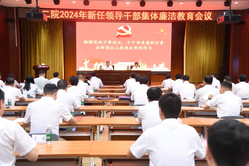 二院紀委書記對新任領導干部進行了集體廉潔談話,并以《腳踏實地干事創業 干干凈凈履職盡責 在新崗位上展現出新的作為》為題講授專題黨課。與會人員共同學習了《中共中央關于進一步全面深化改革 推進中國式現代化的決定》中對深入推進黨風廉政建設和反腐敗斗爭、縱深推進全面從嚴治黨提出的新任務新要求以及《中國共產黨紀律處分條例》的主要修訂內容。會議分析了當前二院全面從嚴治黨形勢任務,結合內外部典型案例,以案釋紀、以案示警,要求參會人員將學紀知紀明紀守紀作為自覺,并號召全體參會人員,牢記初心、滿懷信心、堅定決心、懷有真心、永葆廉心,為二院履行強軍首責、服務備戰打仗奮力跑好歷史的接力棒。