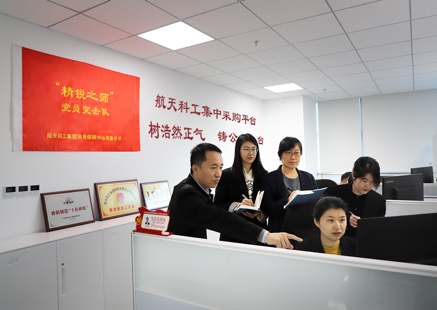 2023年2月,航天科??萍急U喜俊⒖萍急U峡傮w部和集采事業部聯合黨支部聯合成立了“航天極彩精銳之師”黨員突擊隊,而成員平均年齡不過33歲。