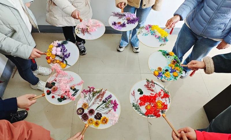 整個過程中,大家相互交流團扇制作的細節,彼此欣賞夸贊,綻放出喜悅的笑臉。活動最后,大家聚在一起將做好的團扇展示拍照,共同合影留念,此次活動也在一片歡聲笑語的氣氛中圓滿結束。