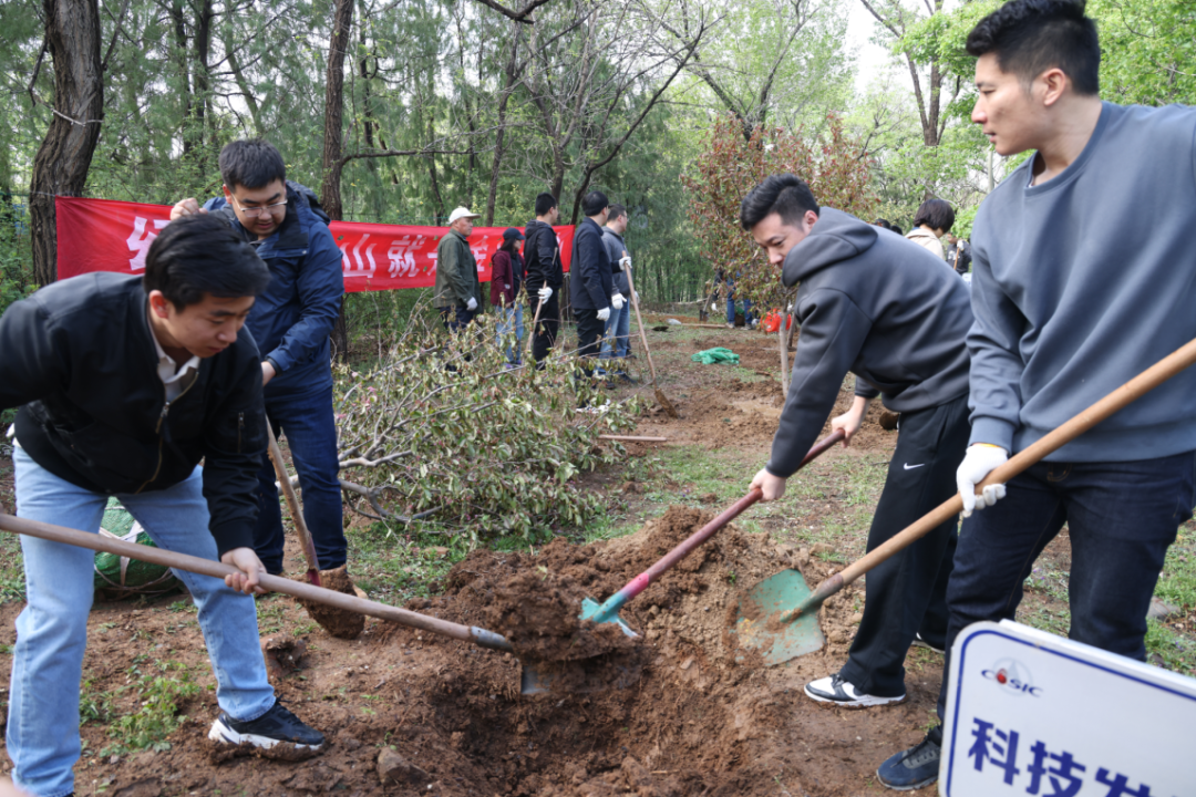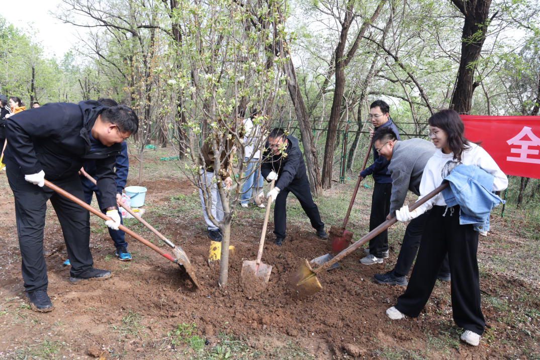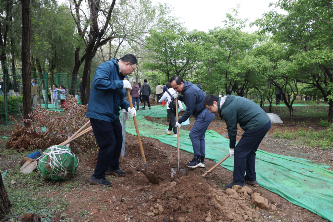 植樹(shù)現(xiàn)場(chǎng),春和景明,一片繁忙有序的勞動(dòng)景象。大家分工協(xié)作,默契配合,揮鍬鏟土、培土圍堰、提桶澆水,種下海棠、山楂、牡丹等樹(shù)苗。在和煦的春風(fēng)中,一株株樹(shù)苗錯(cuò)落有致地挺立著,展現(xiàn)出勃勃生機(jī)。