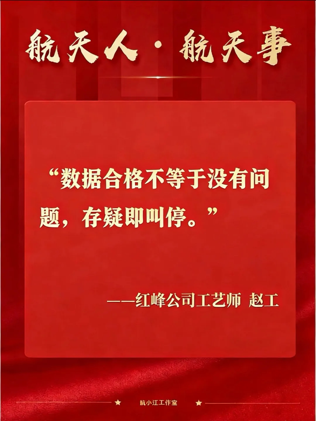 他就是航天科工九院紅峰公司副主任工藝師趙工。沒有絲毫猶豫,更不懼承擔壓力,他以專業的研判和果斷的行動守住質量防線。在他看來:數據合格不等于沒有問題,存疑即叫停。